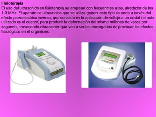 Es de 3 Mhz. Comprar ultrasonido para fisioterapia - La Casa del Fisio. Se entiende por tratamiento ultrasónico el empleo de vibraciones sonoras en el espectro no audible con fines terapéuticos.